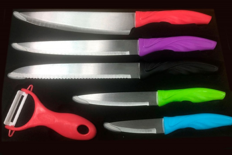 Set de cuchillos de cocina multicolor, fabricados en acero inoxidable. Antibacteriano